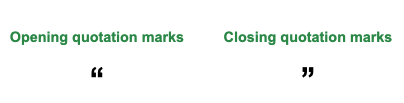 Quotation marks always come in pairs. If there is an opening quotation mark, there must be a closing one. Quotation marks can be either curved/curly (sometimes called “smart”) or straight. If they are curved, opening and closing quotation marks curve in different directions.