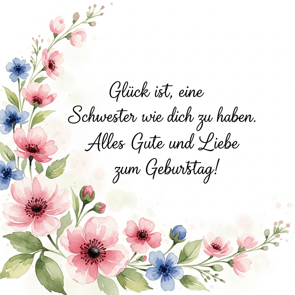 - emotionaler Glückwunsch: Alles Liebe zum Geburtstag, Schwesterherz. Für mich bist du ein Stück Kindheit und für immer mein Zuhause – egal, wie viele Kilometer uns trennen.